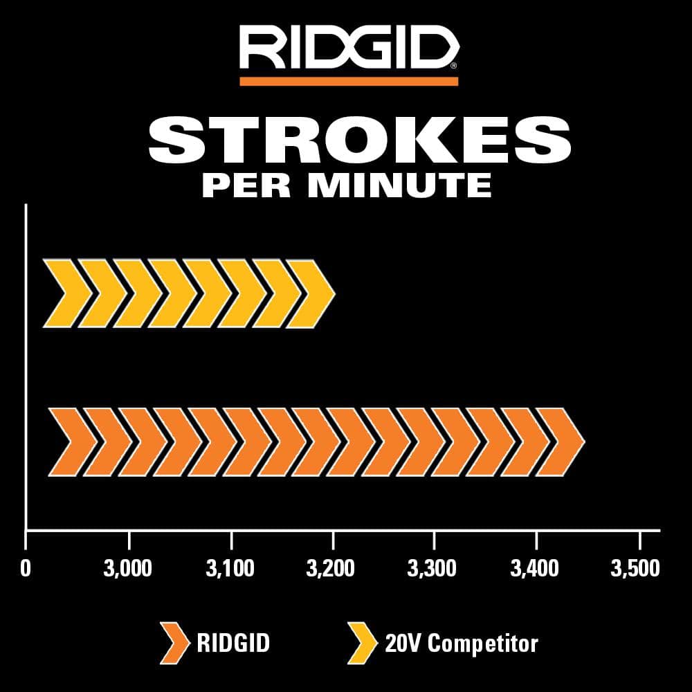 RIDGID introduces the R86344B 18V Brushless Jig Saw. RIDGID’s brushless motor technology delivers maximum performance and longer runtime. This brushless jig saw features powerful, controlled cutting with a max of 3,450 SPM, and cuts up to 150 linear feet. Added die casting delivers increased durability while reducing vibration by 20% compared to the previous model (R8832B). This jig saw features a 4-mode speed selector with a variable speed trigger and 4-orbital settings for precise cuts. It also features a one touch blade insert/eject, and a tool-free bevel adjustment of 45° max to complete the most common angled cuts. With dust blowing capability and an LED light, a clean line of sight is maintained while using this tool. Additionally, the vacuum attachment compatibility offers quick and easy worksite cleaning. As always, this RIDGID 18V Brushless Jig Saw is 100% compatible with all RIDGID 18V batteries. Best of all, this tool is eligible for the Industry's Best Lifetime Service Agreement, simply register within 90 days of purchase for FREE Parts, FREE Service, FOR LIFE. The RIDGID Jig Saw includes the R86344 18V Brushless Jig Saw, dust port attachment, and t-shank wood cutting blade. Battery and charger sold separately.