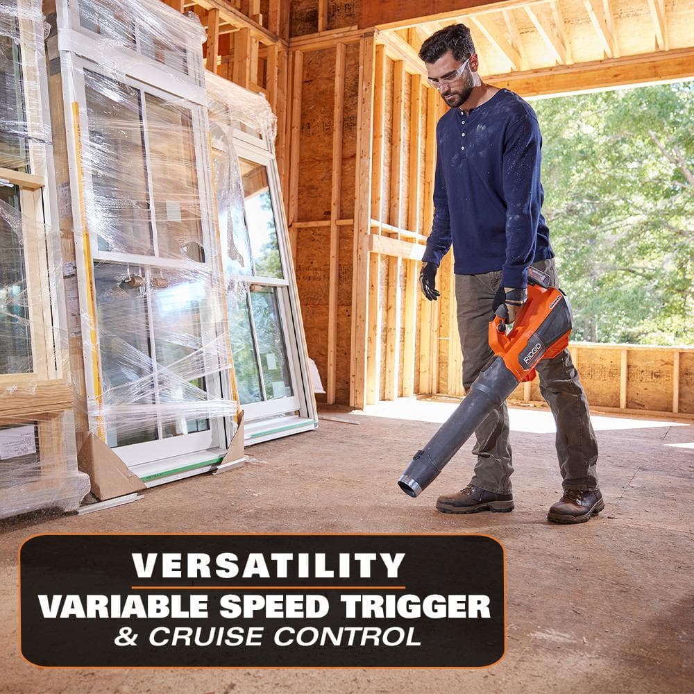 RIDGID introduces the R01601B 18V Brushless Blower (Tool Only). RIDGID's brushless motor technology delivers maximum performance and longer runtime. The blower delivers best in class power with 510 CFM & 130 MPH and also features a turbo button for more power. This blower is 84% quieter than gas blowers for a quieter blowing experience. It is equipped with a variable-speed trigger and cruise control for ease of use. Also, the included speed tip with metal scraper tackles stubborn debris by concentrating air flow. As always, this RIDGID 18V Brushless Blower is 100% compatible with all RIDGID 18V batteries. Best of all, this tool is backed by the Industry's Best Lifetime Service Agreement, simply register within 90 days of purchase for FREE parts, FREE service, FOR LIFE. The R01601B includes the Brushless Blower, blower tube, and speed tip. Batteries and charger sold separately.