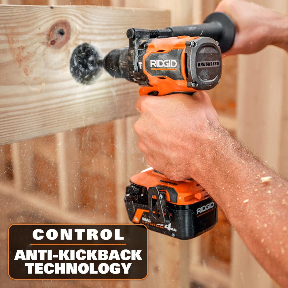 RIDGID introduces the R92082 18V Brushless 2-Tool Combo Kit. RIDGID’s brushless motor technology delivers maximum performance and longer runtime. This kit features the Brushless 1/2 in. High Torque Hammer Drill, Brushless 4-Mode 1/4 in. Impact Driver, (2) batteries, charger, and a hard case. The high torque hammer drill/driver delivers 1,250 in./lbs of torque for maximum power. With a 2-speed gearbox and max RPM of 2,000, it can complete a wide range of demanding applications like drilling into wood, metal, brick, and concrete. It features anti-kickback technology which prevents overturning by stopping the motor once extended rotation is detected. This high torque hammer drill delivers up to 25% faster drilling when compared to the previous version (R860012). The 4-mode impact driver delivers 2,400 in./lbs of torque and 40% faster driving when compared to the previous version (R86002). It features 3-speeds and a self-tapping mode to prevent overdriving, breaking, or stripping screws by stopping the tool once screws have been fully seated. As always, this 18V Brushless 2-Tool Combo Kit is 100% compatible with all RIDGID 18V batteries. Best of all, this kit is eligible for the Industry’s Best Lifetime Service Agreement, simply register within 90 days of purchase for FREE batteries, FREE parts, FREE service, FOR LIFE. This kit includes the High Torque Hammer Drill, 4-Mode Impact Driver, 6.0 Ah MAX Output battery, 4.0 Ah MAX Output battery, charger, and hard case.