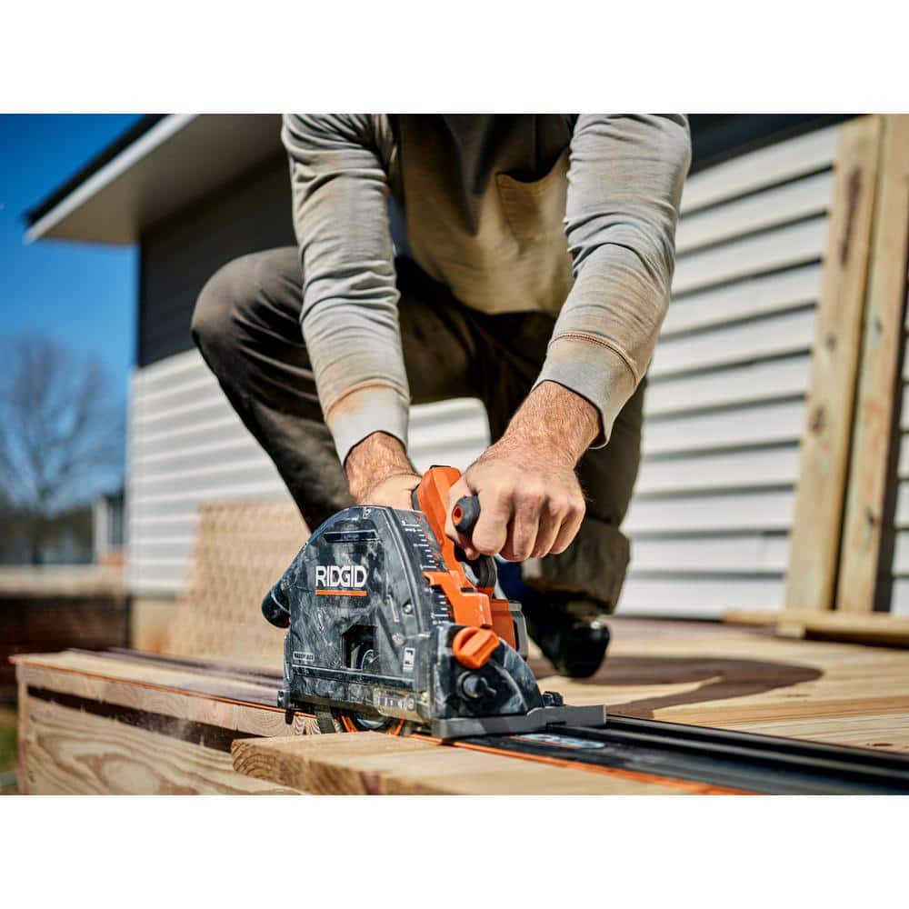RIDGID introduces the AC55TS 55 in. Track Saw Guide Rail. Compatible with the RIDGID R48630 18V Brushless 6-1/2 in. Track Saw, the 55 in. Track Saw Guide Rail is a two-piece aluminum track design which delivers precise and accurate cutting with improved portability. The 55 in. Track Saw Guide Rail utilizes (2) 27-1/2 in. tracks which are both equipped with a rubber cut strip for splinter free cuts. Ideal for cutting sheet material, this accessory can be paired with other RIDGID tracks to complete those longer cuts. With holes located on both ends, this guide rail can be stored on a hook or nail for added user convenience. Additionally, this is equipped with an integrated accessory slot so other compatible tools can take advantage of this guide rail’s precision. The AC55TS 55 in. Track Saw Guide Rail includes the AC55TS Guide Rail and (4) connector bars.